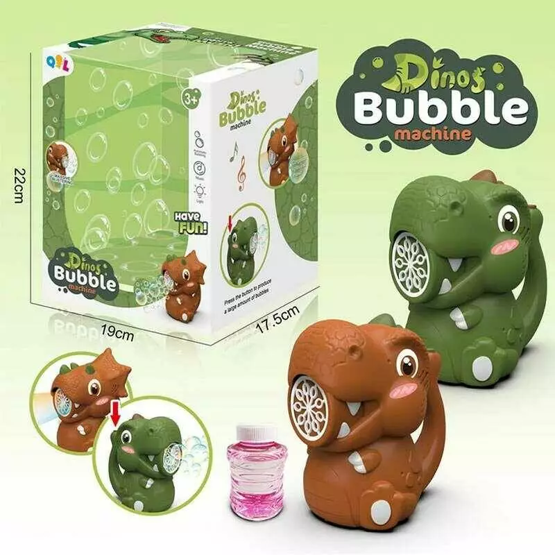 Установка з мильними бульбашками Q 01 B (40/2) 2 види, “Динозаврик”, від батарейок, 2 пляшечки з бульбашками, в коробці