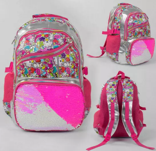 УЦЕНКА Рюкзак С 43591 (50) паєтки, 1 відділення, 3 кишені, дихаюча спинка, в пакеті нетоварний вигляд (цятки на шлейки)