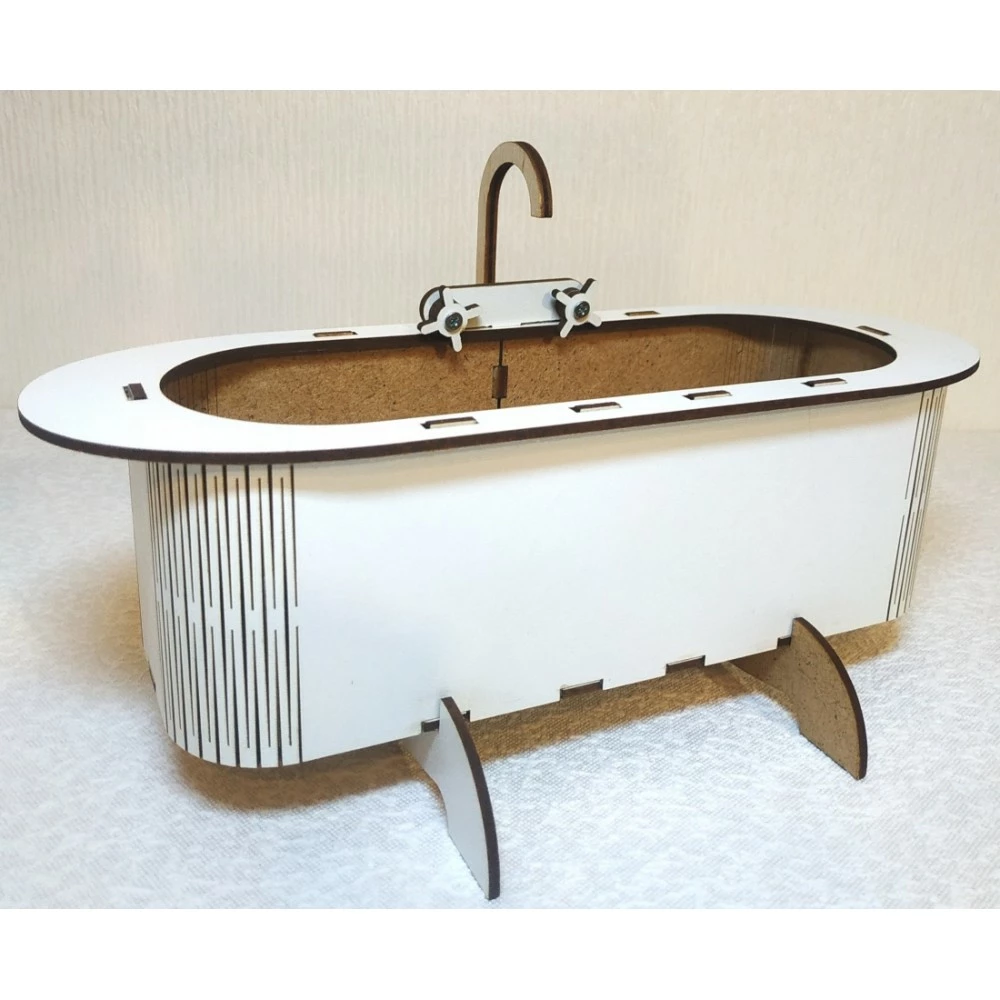 Ванна 1 для ляльок до 30 см (Барбі, Братц, Монстр Хай). Матеріал: ДВП ламіноване і шліфоване. Розмір: 26 * 10 * 15 см. Вага 190г. Упаковка: пакет.