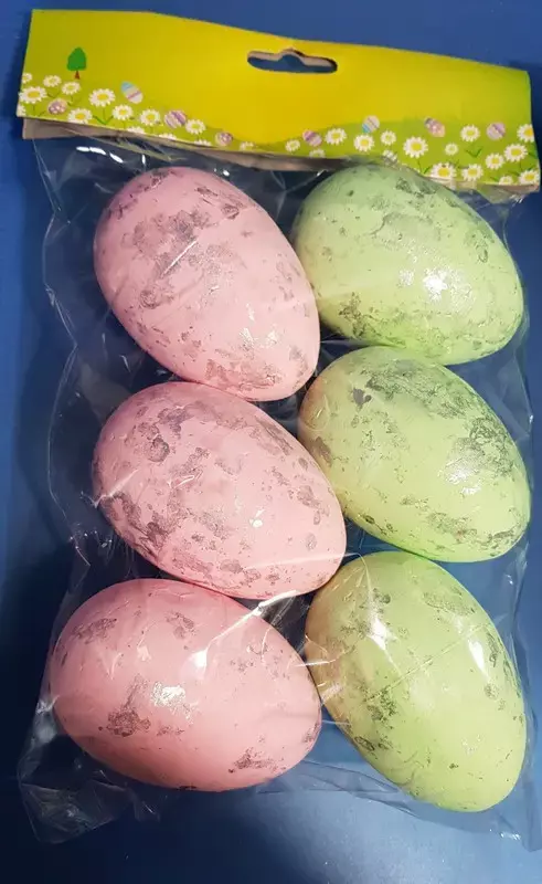 У набір входять 6 великодніх яєць різних кольорів. Набір запакований у пакет.