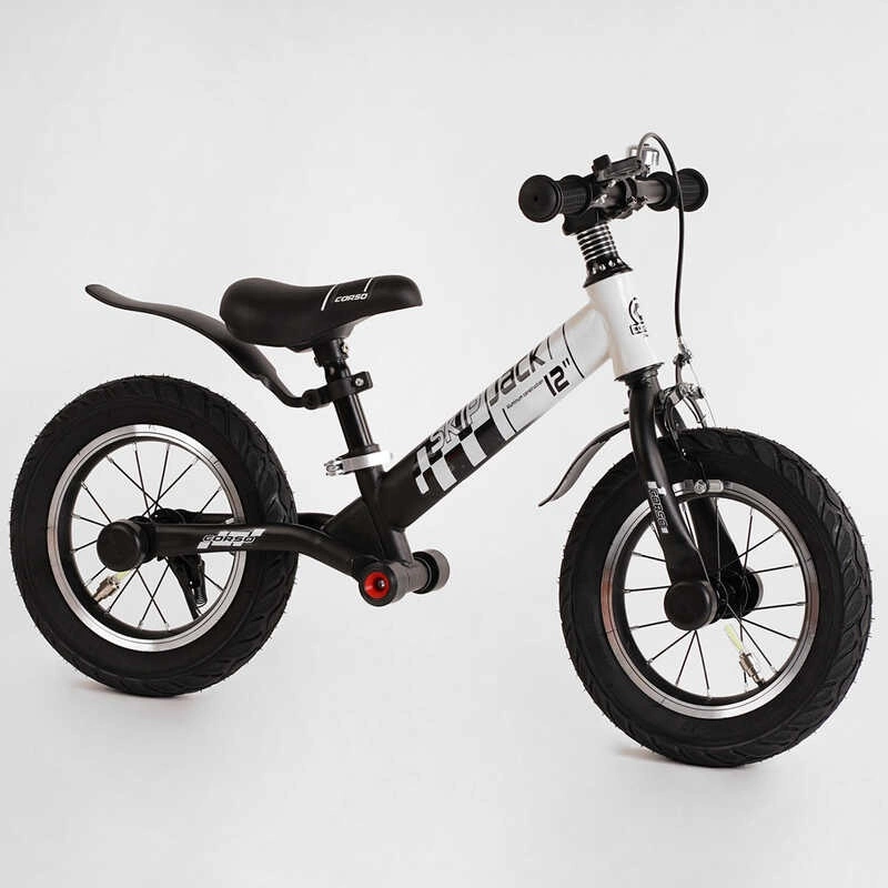 Велобіг Corso ""Skip Jack"" 11057 (1) ЧОРНО-БІЛИЙ, надувні колеса 12"", сталева рама з амортизатором, ручне гальмо, підніжка, в коробці