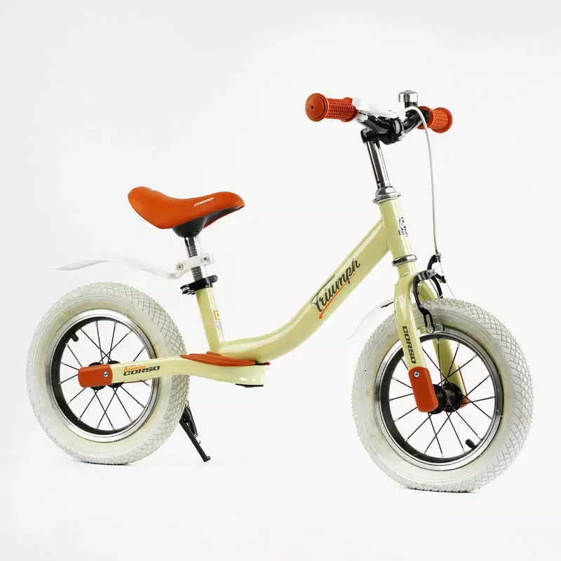 Велобіг Corso ""Triumph"" 40441 (1) СКОЛИ НА РАМІ!! сталева рама, надувні колеса 12"", ручне гальмо, підніжка, крила, дзвіночок, в коробці