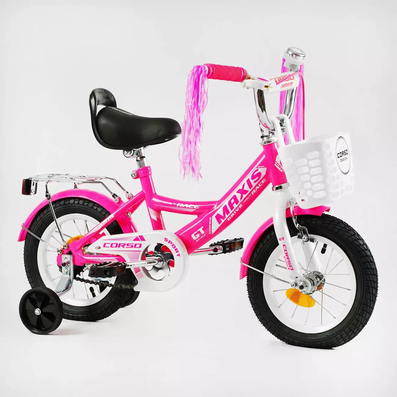 Велосипед 12" дюймів 2-х колісний "CORSO" MAXIS CL-12308 (1) кошик, ручне гальмо, дзвіночок, сидіння з ручкою, дод. колеса, ЗІБРАНИЙ НА 75% у коробці