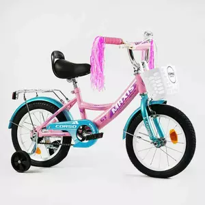 Велосипед 14"" дюймів 2-х колісний ""CORSO"" MAXIS CL-14287 (1) кошик, ручне гальмо, дзвіночок, сидіння з ручкою, дод.колеса, ЗІБРАНИЙ НА 75%, в коробці