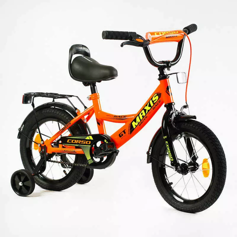 Велосипед 14"" дюймів 2-х колісний ""CORSO"" MAXIS CL-14703 (1) ручне гальмо, дзвіночок, сидіння з ручкою, додаткові колеса, ЗІБРАНИЙ НА 75%, в коробці