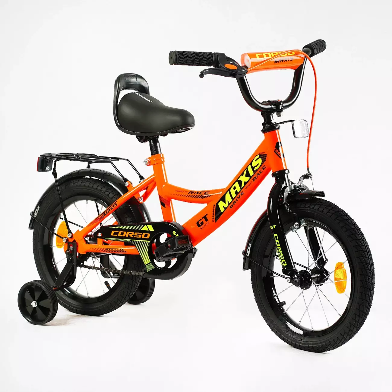Велосипед 14" дюймів 2-х колісний "CORSO" MAXIS CL-14703 (1) ручне гальмо, дзвіночок, сидіння з ручкою, додаткові колеса, ЗІБРАНИЙ НА 75%, в коробці