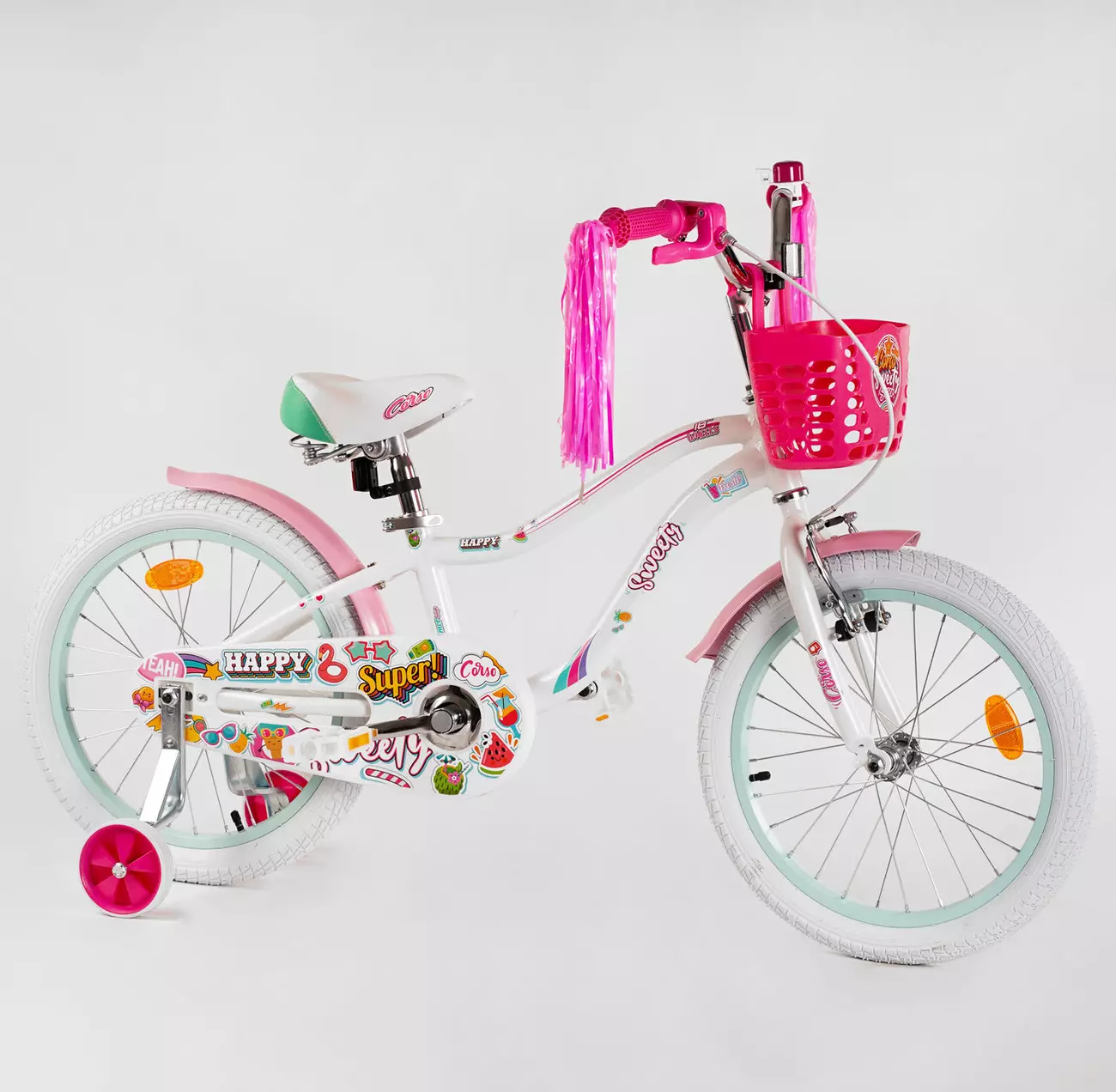Велосипед 16" дюймів 2-х кол. "CORSO Sweety" SW 16016 / 160162 (1) БІЛИЙ, алюмінієва рама 9’’, ручні гальма, прикраси, зібраний на 75%