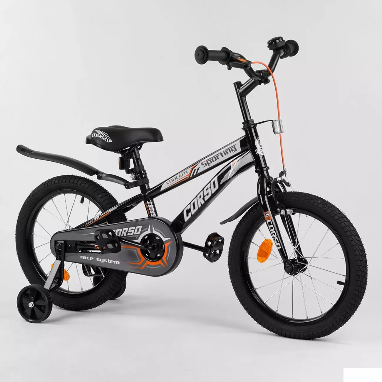 Велосипед 16 "дюймів 2-х колісний" CORSO "R-16317 (1) ручне гальмо, дзвіночок, доп. колеса, ЗІБРАНИЙ НА 75% в коробці