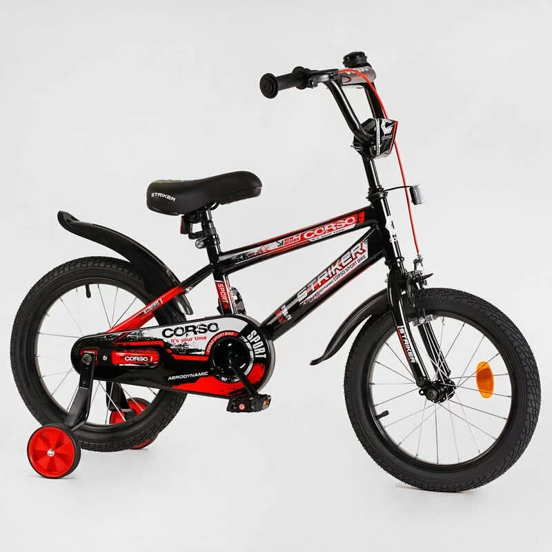 Велосипед 16"" дюймів 2-х колесний CORSO “STRIKER"" EX-16128 (1) ручне гальмо, дзвіночок, дод. колеса, ЗІБРАНИЙ НА 75%
