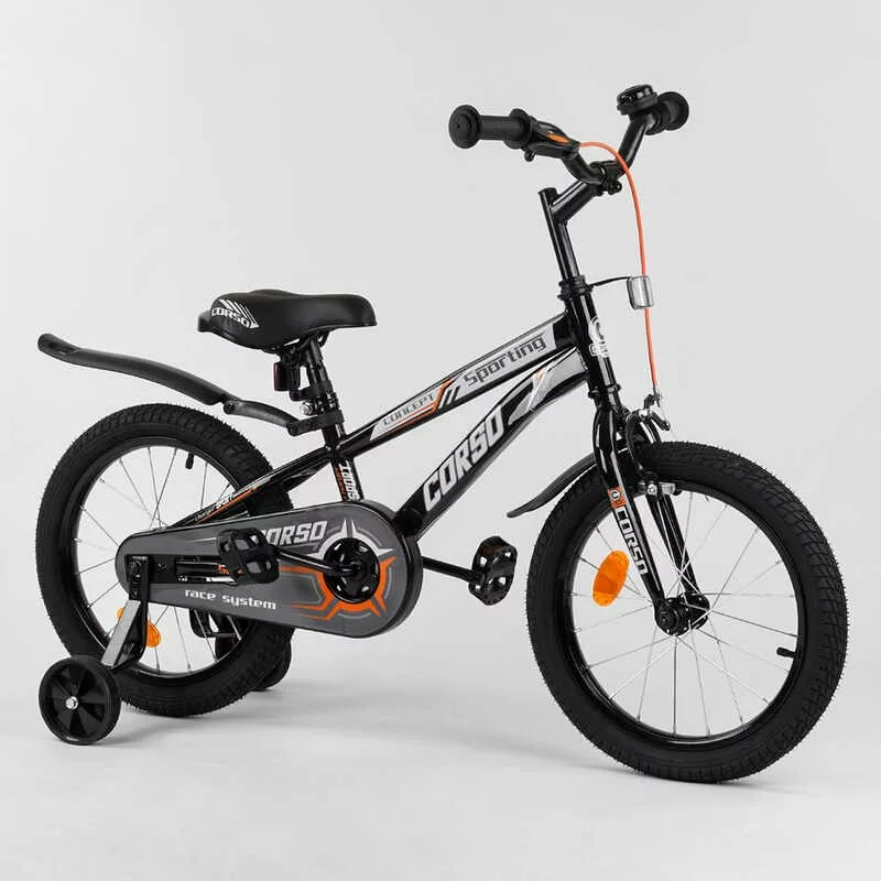 Велосипед 16 ""дюймів 2-х колісний"" CORSO ""R-16317 (1) ручне гальмо, дзвіночок, доп. колеса, ЗІБРАНИЙ НА 75% в коробці