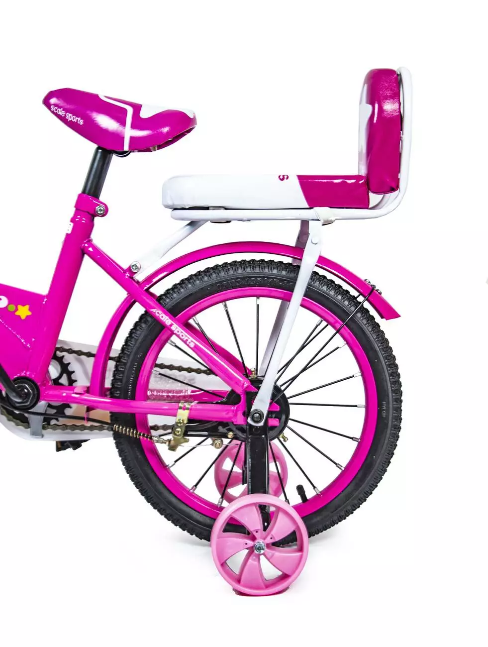 <p>Детский двухколесный для девочек велосипед<strong> "Scale Sports 16 дюймов" Розовый T15 </strong>предназначен для юных велосипедистов! Стильный дизайн велосипеда, его комплектация и надежная конструкция сделают прогулки на свежем воздухе активными и безопасными.</p><br /> <p>Конструкция велосипеда выполнена из прочного стального сплава, который не даст его раме деформироваться и обеспечит её устойчивостью к повреждениям.</p><br /> <p>Рама представленной модели с удобной конструкцией, что делает её более удобной для ребенка. </p><br /> <p>Колеса <strong>"Scale Sports 16 дюймов" Розовый T15 </strong>с надувной камерой на металлических дисках со спицами. Над каждым колесом установлены крылья. Они предотвратят разбрызгивания грязи и воды и защитят ребенка и сам велосипед от загрязнений.</p><br /> <p>Руль и сидение велосипеда регулируется по высоте, что даст возможность подобрать оптимальный размер для каждого ребенка индивидуально. Ручки руля с резиновыми нескользящими накладками.</p><br /> <p>Безопасность во время катания обеспечат: металлический защитный щит на цепи велосипеда, мягкая накладка на его руле. <strong>"Scale Sports 16 дюймов" Розовый T15 </strong>оборудован передним и задним ручным дисковым механическим тормозом.</p><br /> <p>Специально для начинающих велосипедистов данная модель комплектуется двумя съемными страховочными колесами.</p><br /> <p>Дополнительно велосипед оборудован передним прочным багажником с зажимом и задним сидением с стильным дизайном.</p><br /> <p><strong>Характеристики:</strong></p><br /> <p>Возраст: 4-8 лет, рост: 100-140 см;</p><br /> <p>Диаметр колес: 16” (примерно 40.6 см), ширина - 6 см;</p><br /> <p>Высота сидения от пола: max-72 см (регулируемая);</p><br /> <p>Руль: высота от пола - 80 см (регулируемая), ширина - 50 см;</p><br /> <p>Общая длина велосипеда: 108 см;</p><br /> <p>Длина рамы: 39 см.</p><br /> <p>Велосипед собран на 75 %;</p><br /> <p>Вес велосипеда с коробкой: 12 кг.</p><br />