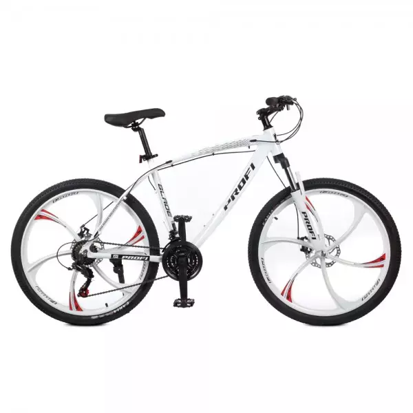 КОРОТКІ ХАРАКТЕРИСТИКИ РАМА MTB АЛЮМІНІЙ, 19" ВИЛКА АЛЮМІНІЙ, ПРУЖИННО-ЕЛАСТОМЕРНОГО ТИПУ, LANTU КОЛЕСА WANDA, 26Х2,125 ГАЛЬМА JAK, ДИСКОВІ МЕХАНІЧНІ, ПОЛУАЛЮМІНІНІЙ ТРАНСМІСІЯ SHIMANO TOURNEY ST-EF500 L3/R7 ПЕРЕМИКАЧ ПЕРЕДНІЙ SHIMANO TOURNEY TZ FD-TZ500 TM6T ПЕРЕМИКАЧ ЗАДНІЙ SHIMANO TOURNEY TZ RD-TZ500 TM6T КІЛЬКІСТЬ ШВИДКОСТЕЙ 21 ВАГА 14,6КГ ДЕТАЛЬНІ ХАРАКТЕРИСТИКИ СЕРІЯ BLADE БРЕНД PROFI КАТЕГОРІЯ MTB СТАТЬ М/Ж АРТИКУЛ BLADE 26.2B РАЗМІР КОЛЕСА, ДМ 26" МАТЕРІАЛ РАМИ/РОЗМІР РАМИ АЛЮМІНІЙ 19" ВИЛКА АЛЮМІНІЙ, ПРУЖИННО-ЕЛАСТОМЕРНОГО ТИПУ, LANTU КЕРМО СТАЛЬ ВИНОС КЕРМА АЛЮМІНІЙ ШИФТЕР SHIMANO TOURNEY ST-EF500 НАВІСНЕ ОБЛАДНАННЯ SHIMANO TOURNEY КІЛЬКІСТЬ ШВИДКОСТЕЙ 21 КІЛЬКІСТЬ ЗІРОК (ПЕРЕДНІ) 3 КІЛЬКІСТЬ ЗІРОК (ЗАДНІ) 7 ТРАНСМІСІЯ І СИСТЕМА ПЕРЕДАЧ: SHIMANO TOURNEY ST-EF500 L3/R7 ПЕРЕДНІЙ ПЕРЕМИКАЧ (ЛІВИЙ) SHIMANO TOURNEY TZ FD-TZ500 TM6T ЗАДНІЙ ПЕРЕМИКАЧ (ПРАВИЙ) SHIMANO TOURNEY TZ RD-TZ500 TM6T ШАТУНИ СТАЛЬ КАСЕТА (ТРІСКАЧКА) ТРІСКАЧКА, SHIMANO TZ500-7 ГАЛЬМА: ПЕРЕДНІ JAK, ДИСКОВІ МЕХАНІЧНІ, ПОЛУАЛЮМІНІНІЙ ЗАДНІ JAK, ДИСКОВІ МЕХАНІЧНІ, ПОЛУАЛЮМІНІНІЙ ГАЛЬМОВІ РУЧКИ МЕТАЛ КОЛЕСА (ГУМА) WANDA, 26Х2,125 ОБОДА ЛИТЫЕ, МАГНИЕВЫЙ СПЛАВ ПЕДАЛІ МЕТАЛ З ПЛАСТИКОВИМ КОРПУСОМ ДОД. КОМПЛЕКТУЮЧІ КАТАФОТ (ПЕРЕДНІЙ/ЗАДНІЙ), ПІДНІЖКА