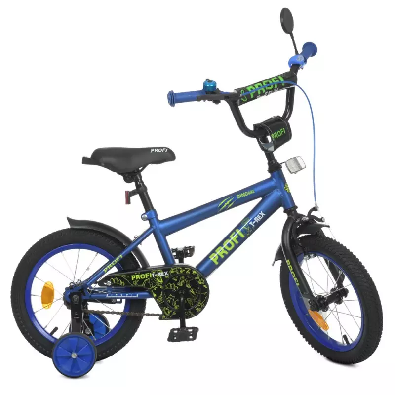 Велосипед дитячий PROF1 14д. Y1472 Dino, SKD45, дзвінок, ліхтар, доп.колеса, темно-синій(мат.).