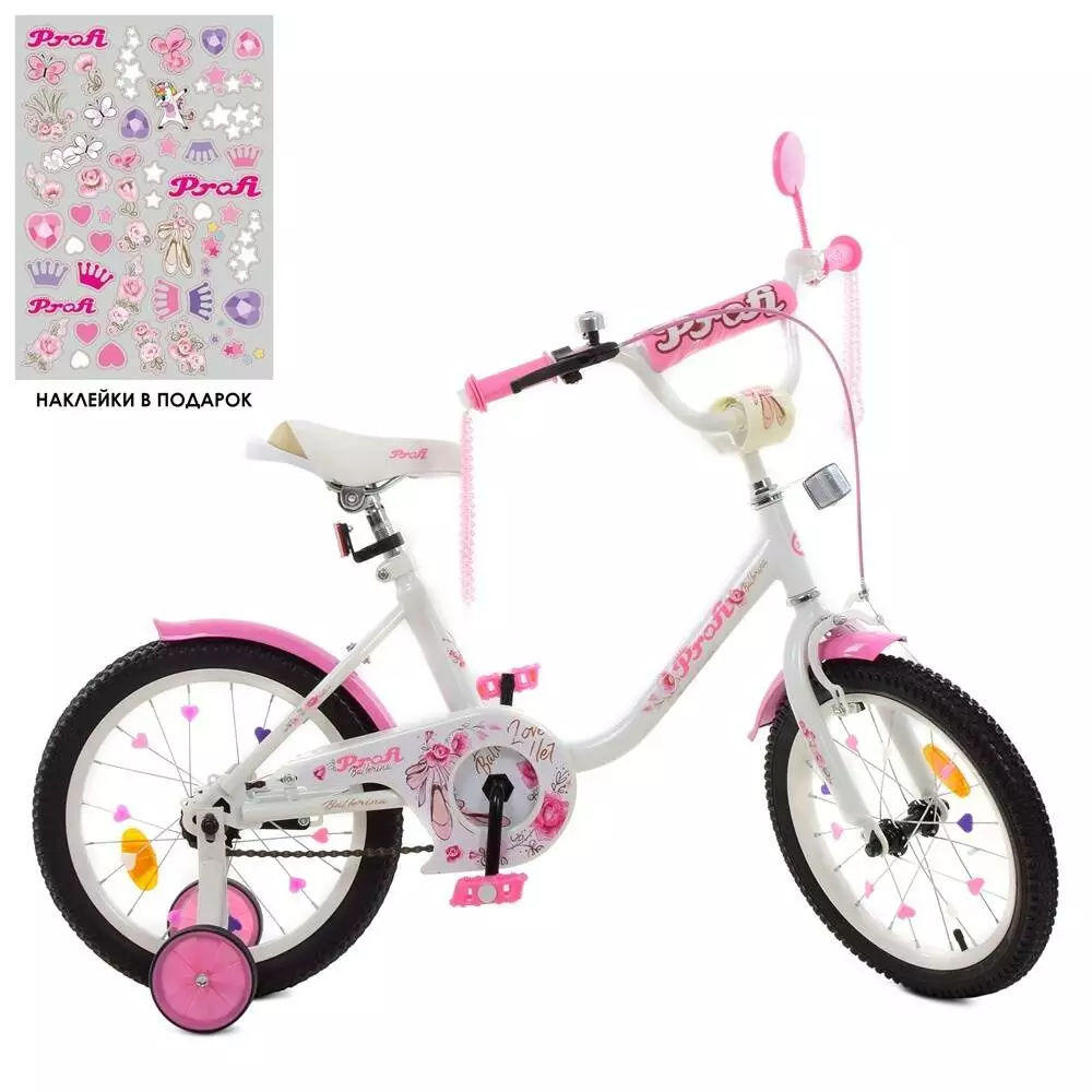 Велосипед дитячий PROF1 14д. Y1485 Ballerina, SKD45, дзвінок, ліхтар, дод.колеса, біло-рожевий.