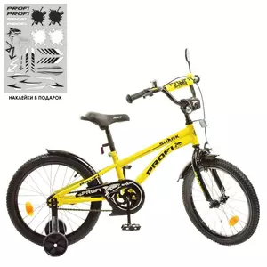 Велосипед дитячий PROF1 16д. Y16214 Shark, SKD45, жовто-чорний, дзвінок,ліхтар,дод.колеса.