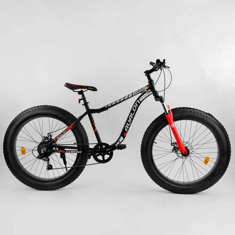 Велосипед Спортивний CORSO «Avalon» 26"" дюймів 21085 (1) ФЕТБАЙК, рама алюмінієва, обладнання Shimano 7 швидкостей, зібраний на 75%