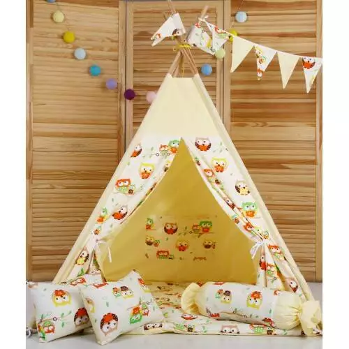 Вигвам Хатка комплект Бежевые Совы с подушкой - Малыш