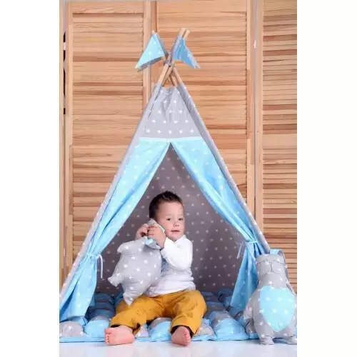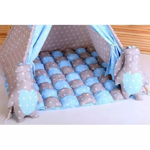 Вигвам Хатка комплект Бонбон Принц Синий с серым с подушками - Малыш