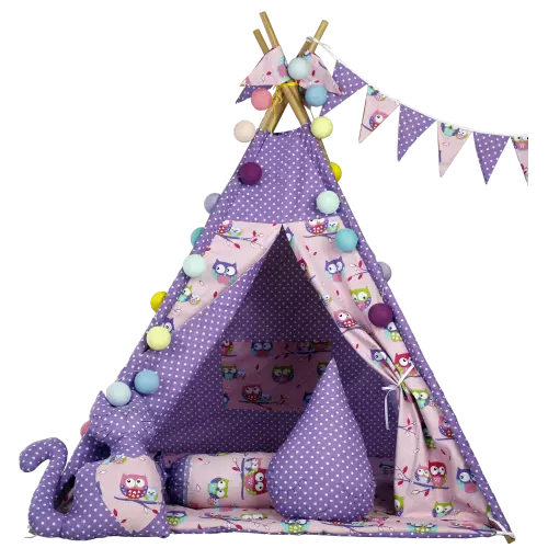 Вигвам Хатка комплект Фиолетовые совы с подушкой - Малыш