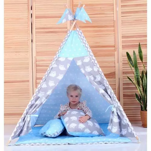 Вигвам Хатка комплект Ноченька Голубой с серым с подушками - Малыш