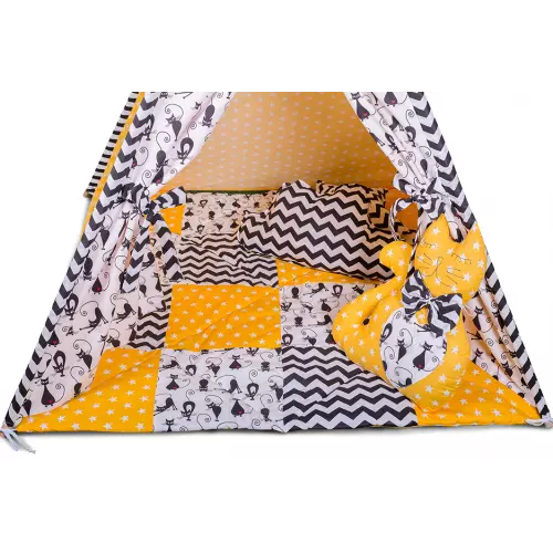 Вигвам Хатка комплект желто-черный Кошка с подушкой - Малыш