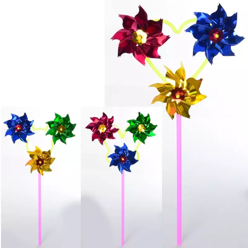 Вітрячок M 1747 вертушка, діам. 11 см., 3 квітки, фольга, 4 види, 38-11-4 см.