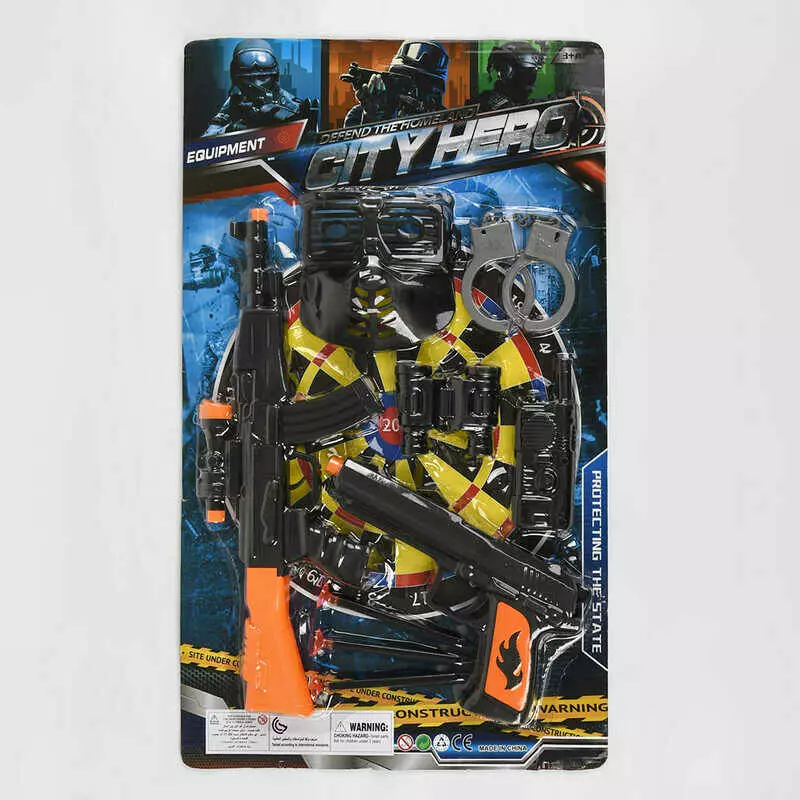 Військовий набір 002-57 (60/2) автомат, пістолет, рація, наручники, маска, бінокль, патрони на присосках, на листі