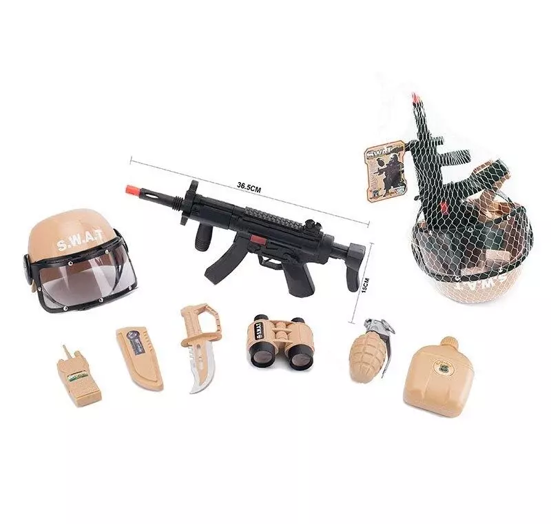 Військовий набір 763 B 03 (36/2) 7 елементів, автомат, шолом, граната, в сітці