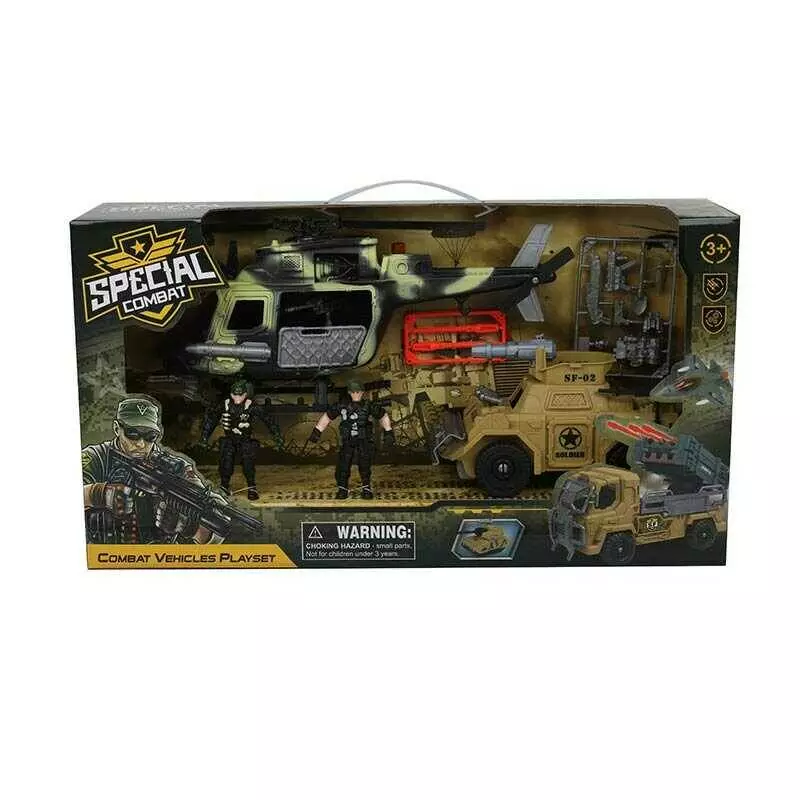 Військовий набір F 3109-17 (12) гелікоптер, машина, 2 фігурки військових, рухомі елементи, стріляє снарядами, в коробці