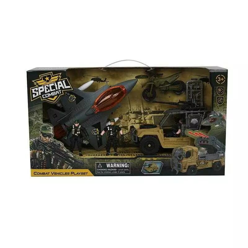 Військовий набір F 3109-20 (12) літак, машина, мотоцикл, 2 фігурки військових, рухомі елементи, в коробці