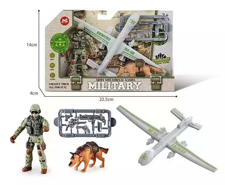 Військовий набір F 9-2 (240/2) безпілотник, фігурка військового, собака, зброя, в коробці