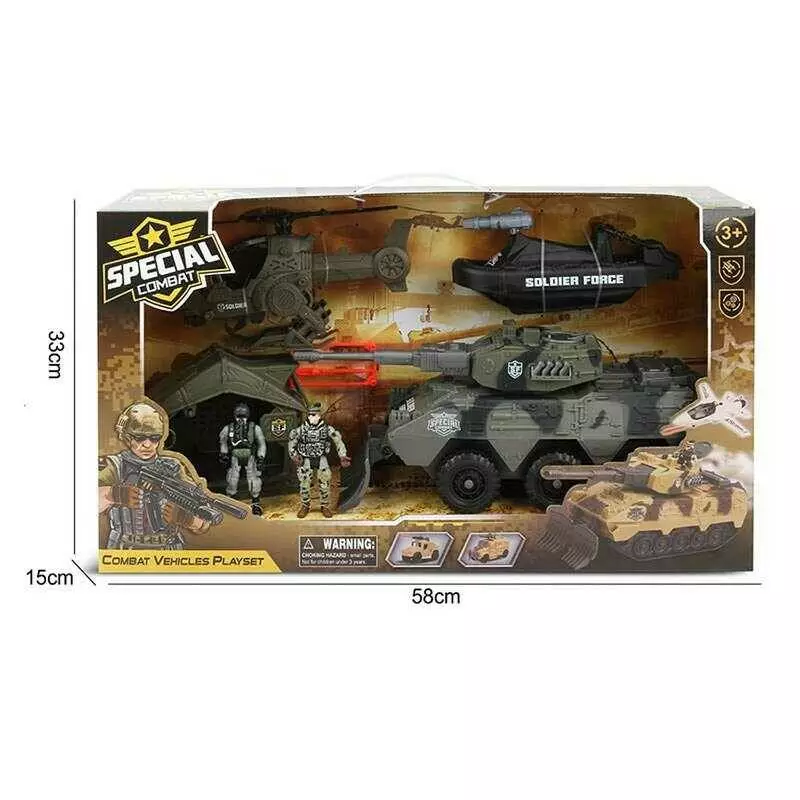 Військовий набір G 3109-59 (12) гелікоптер, танк, моторний човен з запускачем снарядів, 2 фігурки військових, рухомі елементи, в коробці