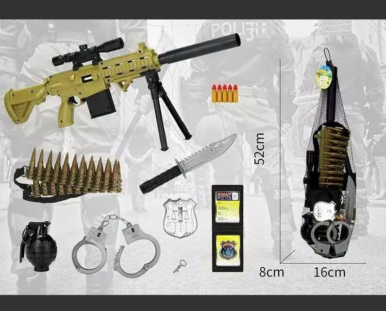 Військовий набір JL 555-11 (60/2) гвинтівка, патрони, ніж, наручники, жетон, граната зі звуком, у сітці