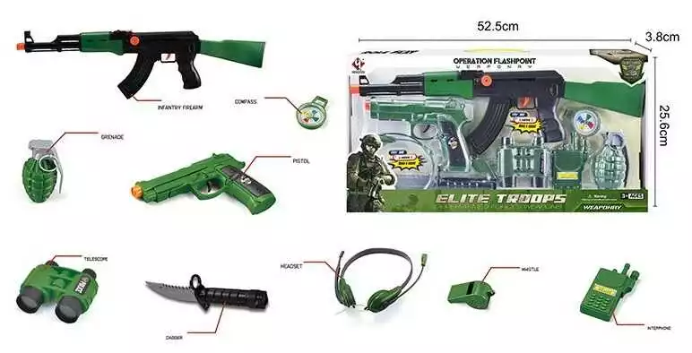 Війсковий набір M 016 B (36/2) 2 види зброї, тріскачка, аксесуари, в коробці
