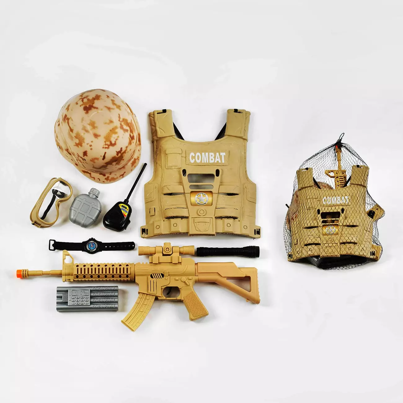 Військовий набір SW 208 (36/2) 9 елементів, бронежилет, шолом, автомат, у сітці