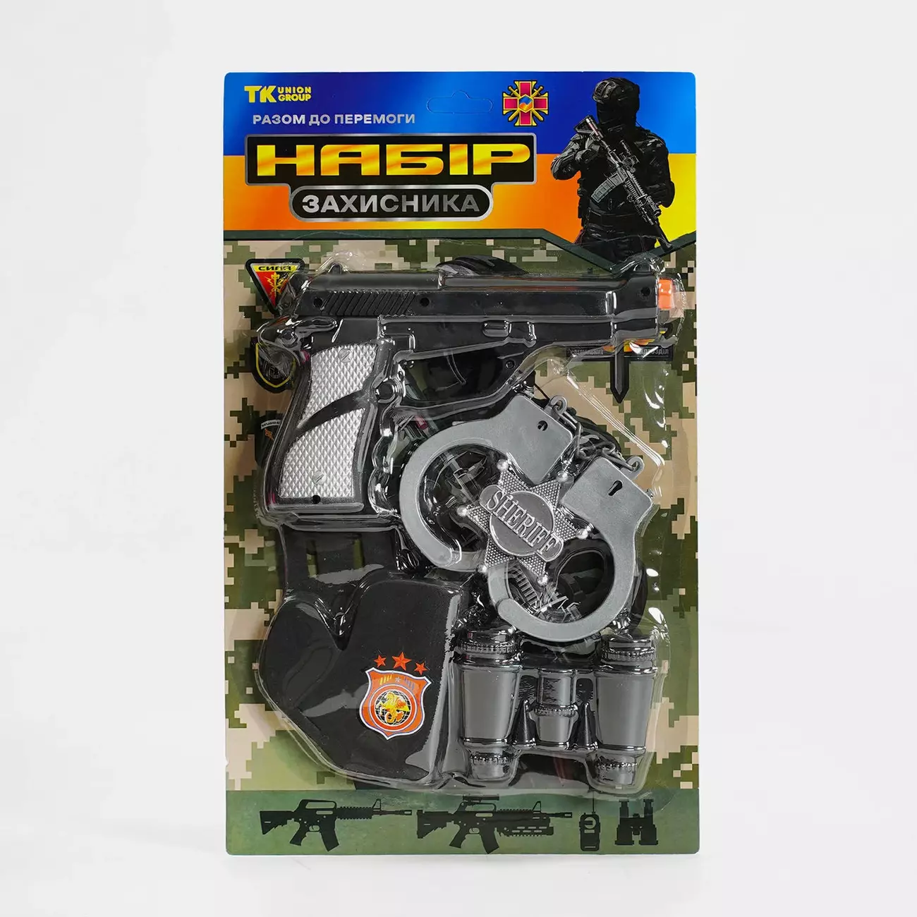 Військовий набір TK - 67015 від виробника "TK Group" стане безперечним доповненням захопливих сюжетних ігор юного захисника! Адже дана комплектація містить все необхідне для успішного виконання поставленого спецзавдання! Також рухливі ігри сприятимуть розвитку комунікативних навичок, витривалості, уважності, фантазії та креативного мислення. Особливості: - симуляція ігор у спецагентів; - стильний реалістичний дизайн; - компактний пістолет; - тематичні аксесуари: кобура, бінокль, наручники та жетон.