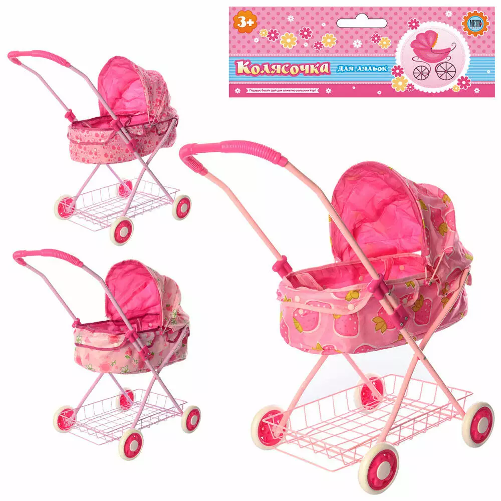 Візок 8826 N для ляльки, класика, люлька (з ручками), кул., 28-70-8 см