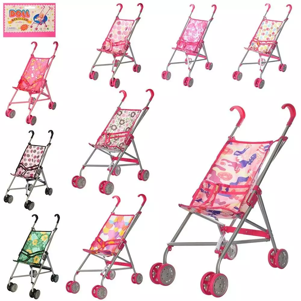 Візок 9302 W для ляльки, мет., подвійні колеса, оберт., 5 видів, 55-49-26 см.