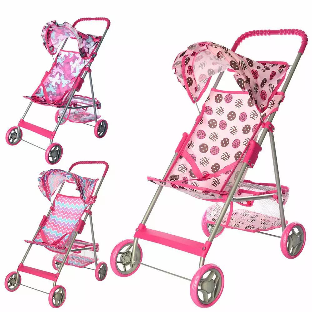 Візок 9304 для ляльки, мет., прогулянковий, кошик, кул., 52-33-8 см.
