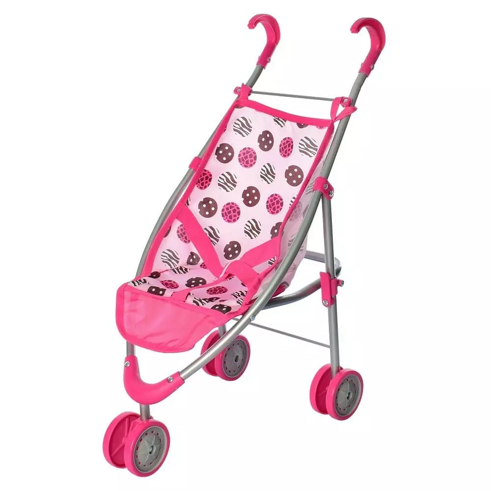 Візок 9628 для ляльки, мет., прогулянковий, ремені безпеки, подвійні колеса, 27-63-8 см.