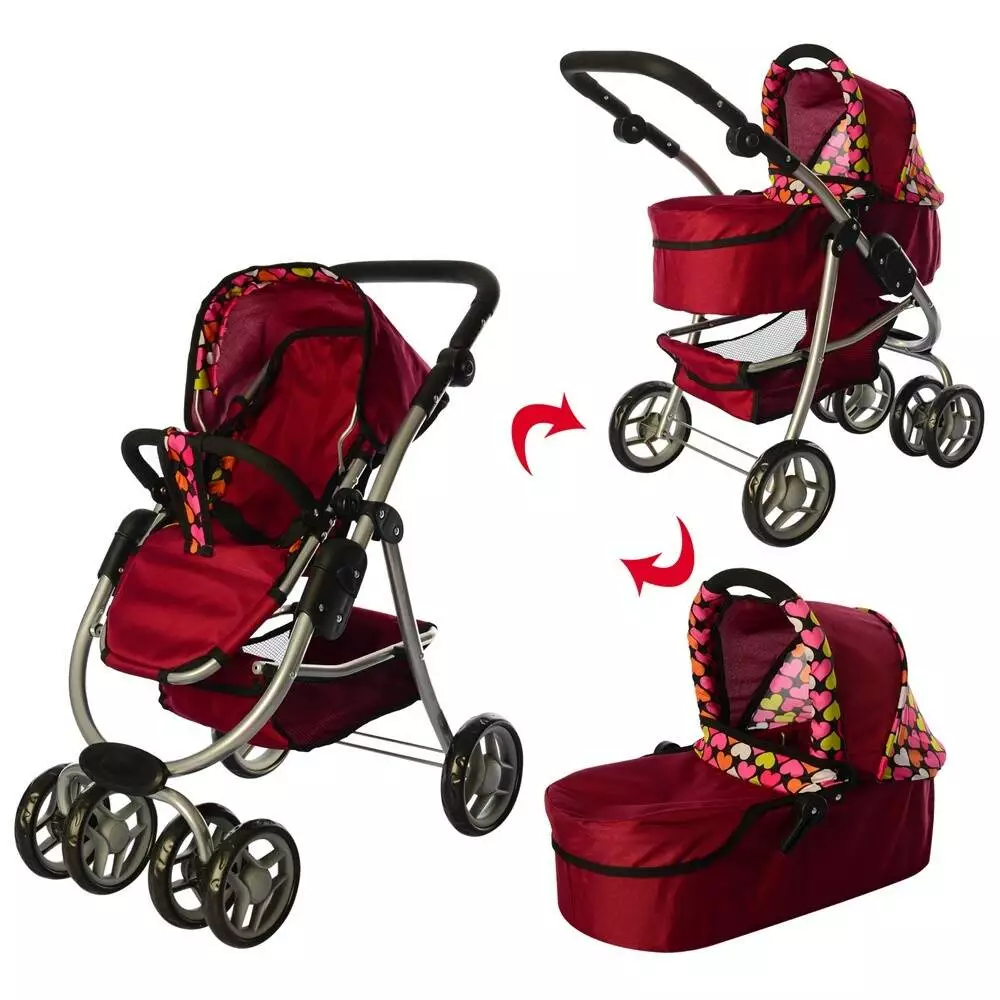 Візок 9662M для ляльки, мет., прогулянковий/класика, подвійні колеса, оберт., кошик, кор.