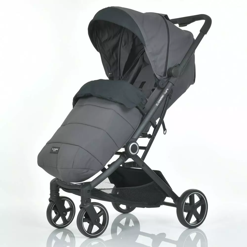 Візок дитячий ME 1099 LYRA Grey прогулянковий, регул. ручка, регул.спинки ременем, чорна рама, сiрий