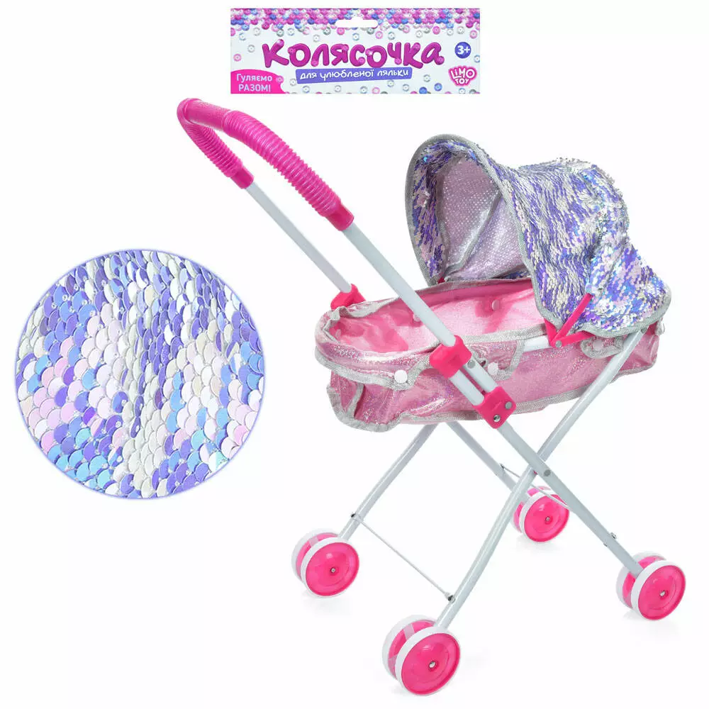 Візок M 5091 UA для ляльки, класика, паєткі, мет., кул., 26-60-10 см.