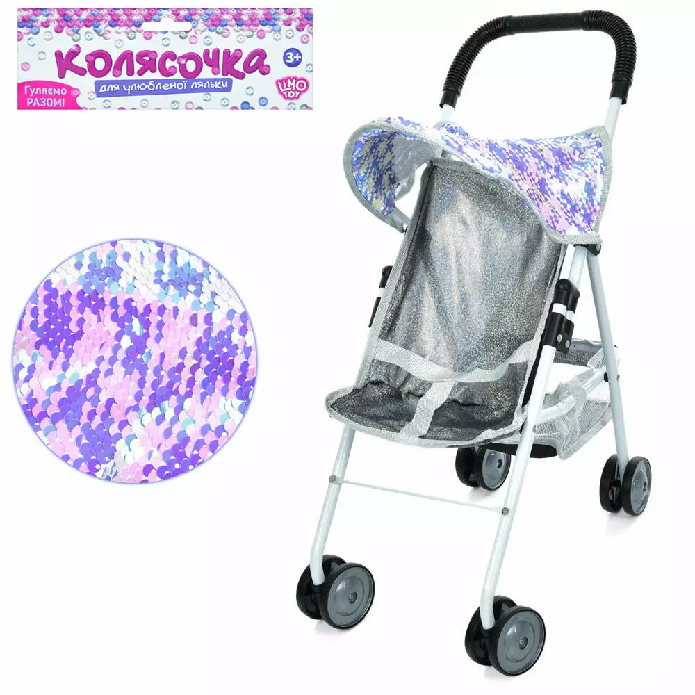 Візок M 5095 UA для ляльки, прогулянковий, кошик, мет., кул., 26-60-10 см.