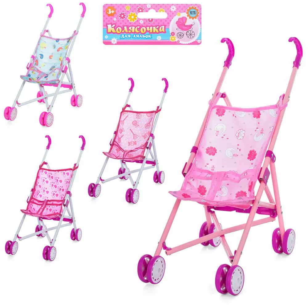 Візок M 5675 UA для ляльки, прогулянкова, тростина, 4 види, кул., 12-65-8 см.