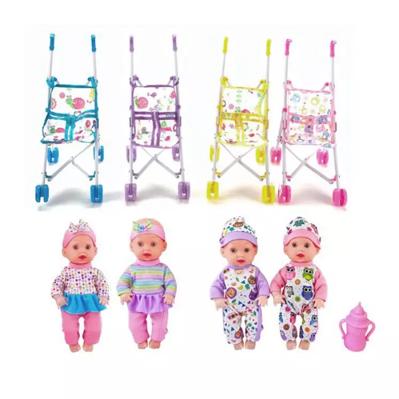 Візок з лялькою C1107B пупс, пляшечка, 4 види, муз., бат. (табл.), кул., 22-55-7 см.
