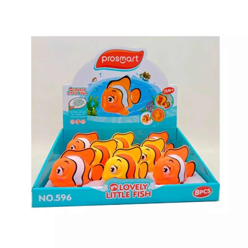 Водоплавна іграшка 596 рибка, заводна, 8 шт. (2 кольори) в диспл., 30-23-8 см.