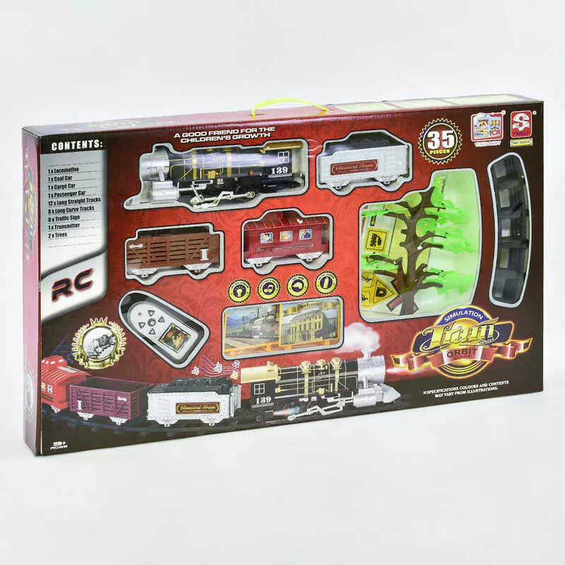 Залізниця 3055 (8) паротяг на р/у, 35 деталей, світло, звук, дим, в коробці