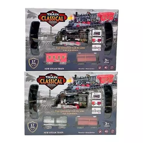 Залізниця Y0309-1-2 локомотив, вагон 2 шт., 2 види, муз., світло, бат., кор., 41,5-28,5-6 см.