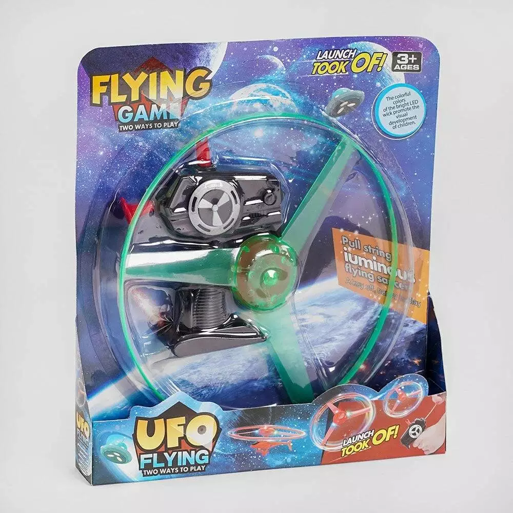 Запускач зі світлом 1798-38 В створить атмосферу польоту космічного корабля над вами. Особливості: - відповідає технічному регламенту безпеки іграшок; - набір складається з двох елементів, велика вертушка та установка для запуску вертушки; - вертушка зі світловим ефектом, при натисканні кнопки вона починає мерехтіти; - Установка для запускача заводним механізмом (відтягується нитка). Запускник – це весела гра, в яку можна грати без зупинки та втоми. Цей запускник можна запускати вночі завдяки тому, що він світиться, такий запуск створить незабутні спогади для вашого малюка.